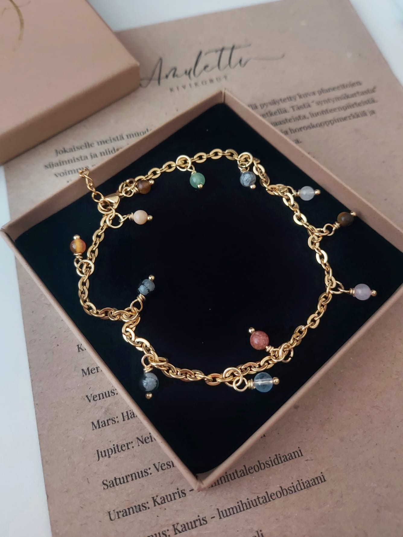 Tuotteen mukana saat tiedot korussa käytetyistä kivistä.